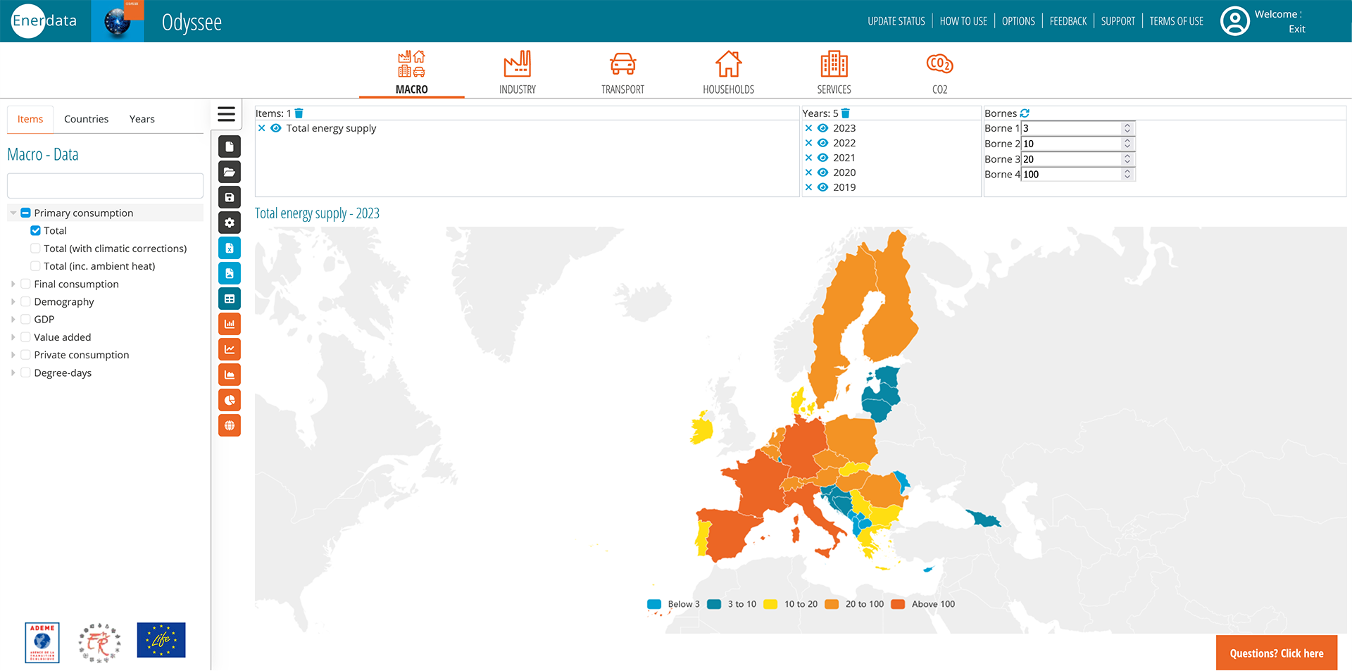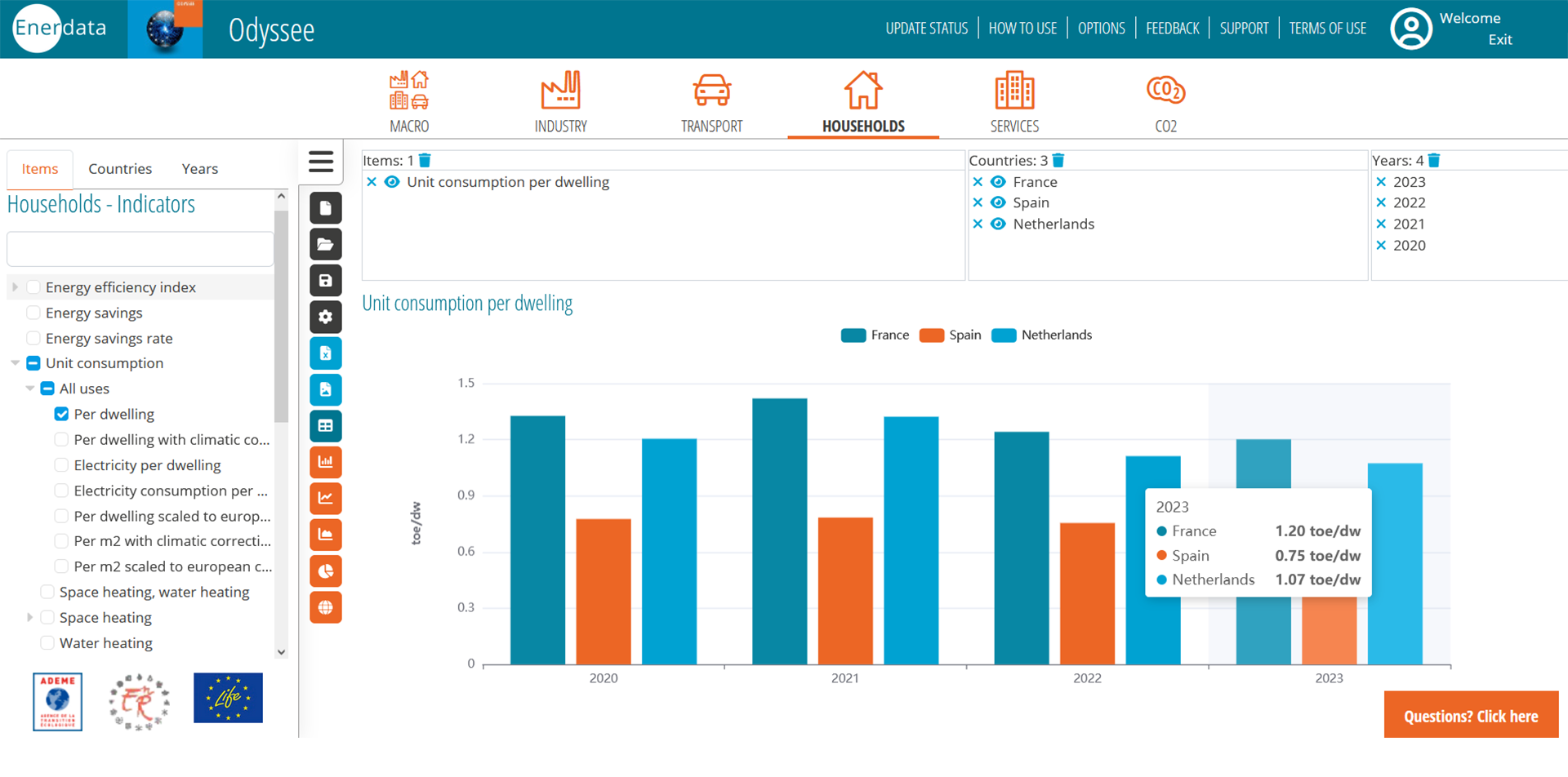 Odyssee 提供独特的能源效率指标以及详细的能源消耗数据,包括工业、住宅、运输和服务部门以及潜在驱动因素的最终用途。无论你是政策制定者、研究人员、投资者还是银行家,都能找到通往各个国家各行业及其细分行业最环保利用的途径。