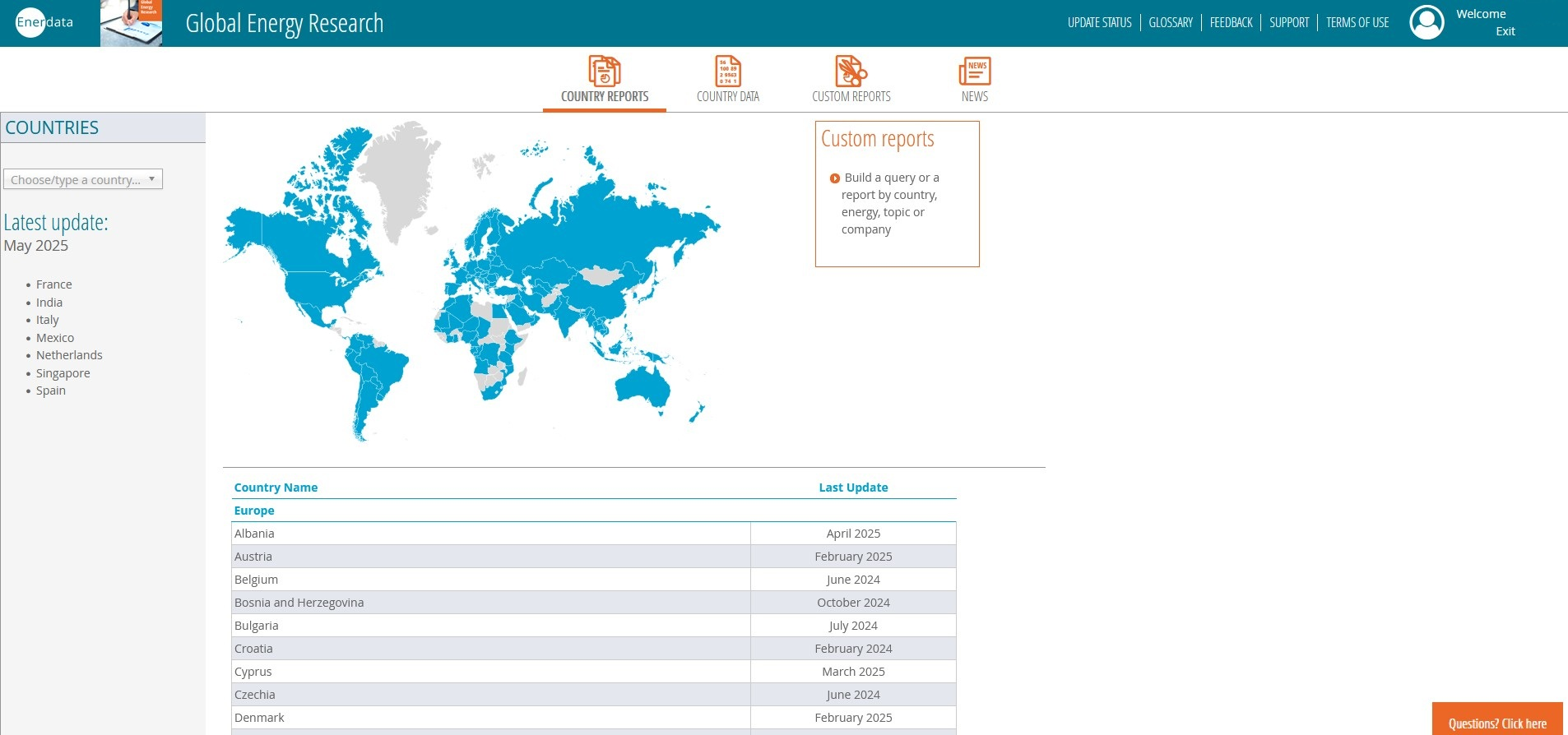 全球能源研究是一项在线信息服务,涵盖 110 多个国家的能源产业。该服务提供最新的市场报告,其中包含有关石油、天然气、煤炭,以及电力和 CO2 市场的宝贵分析和指标。